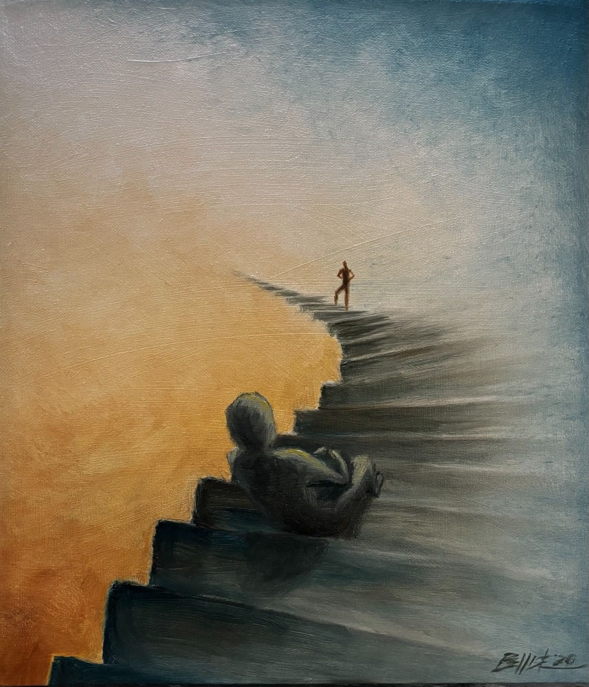 One persons visual interpretation of perseverance, music, futility, trees, gravity, sidewalks, art, artists and beauty.